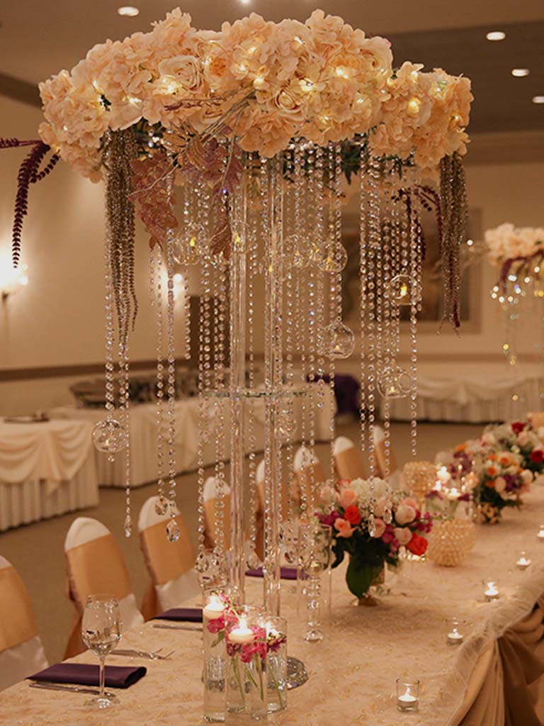 From the heritage of Moroccan theming to the glamour of Hollywood and the glitz of Bollywood we will create you a night to remember! With bespoke hand crafted wooden mandaps to beautiful stage sets and elegant backdrops, we have all your needs covered. Raheela Design Studio offers unique designer head tables and lavish centerpieces that create those finishing touches to your décor.